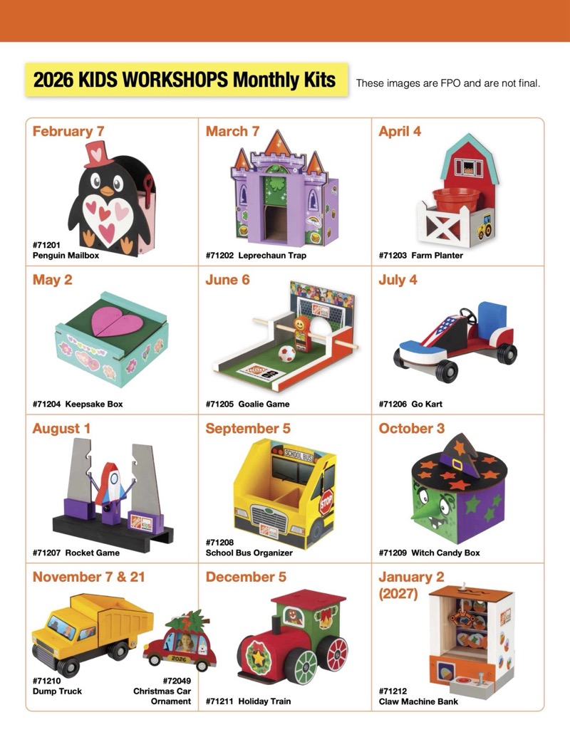 (EST) Home Depot Kids Workshops – Upcoming Events