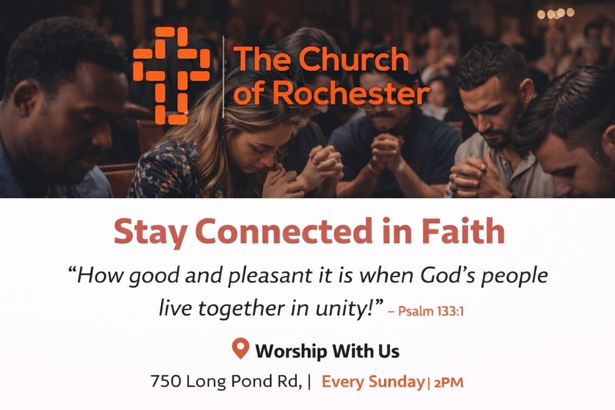 Get notifications about service times, event reminders, schedule updates, and church announcements from Church of Rochester. Subscribe to stay informed and involved. https://churchofrochester.com 750 Long Pond Rd, Rochester, NY 14612