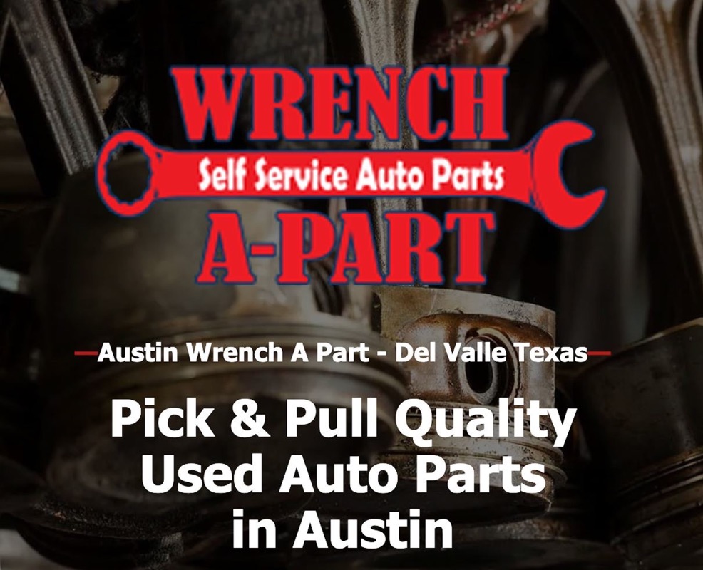 Austin Wrench-A-Part is a self-service junkyard in Del Valle, TX with over 1800 vehicles available for used auto parts. Customers can bring tools and pull parts themselves at low prices, with equipment like wagons and engine hoists provided. 📍5055 Hwy 71 East, Del Valle, TX 78617 | 📞 (512) 501-6946 | Open daily 9:00 AM–5:30 PM (yard), closes at 6:00 PM.